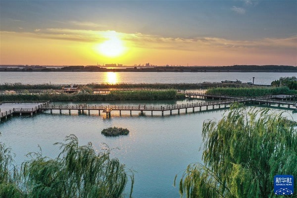 2021年10月20日,习近平总书记专程来到黄河入海口码头,凭栏远眺:“今天来到这里,黄河上中下游就都走到了,我心里也踏实了。”
