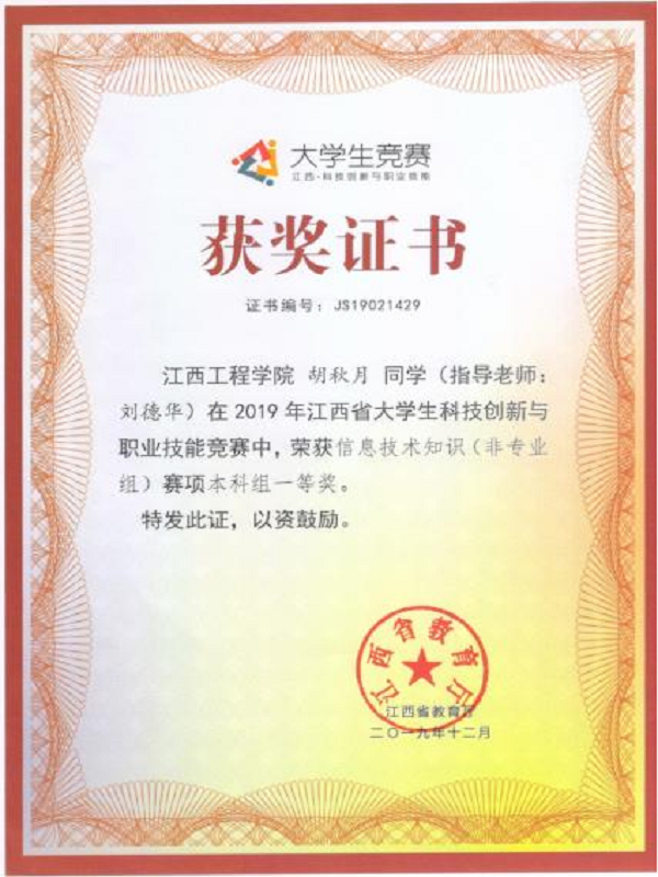 数字贸易学院一直以来都高度重视学生职业技能的培养,积极推进“以赛促学、以赛促教”,近三年来,数字贸易学院学生在各类专业大赛中屡获佳绩,荣获江西省移动商务大赛团体总分第一名2次,获奖200余项,其中省一等奖57项,每年各类比赛学生参与率超95%。2019级学生张楚慧,在“江中利活杯”2020年人民优选直播大赛江西赛区开赛仪式上做为高校的唯一学生参赛代表脱稿发言,受到江西省教育厅郭厅长的接见。