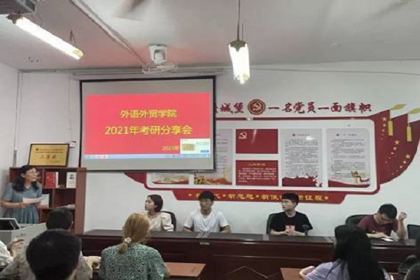 在2020年全国硕士研究生考试中,外语外贸学院再创佳绩。学院2016级商务英语本科班中,26个学生参加硕士研究生考试,其中13人通过国家线,过线率50%,4人收到拟录取通知。其中张金凤同学以408高分被桂林理工大学翻译硕士专业录取,丁丽娜、曹甜甜、魏敏仙和张敬涛4名同学分别被福建师范大学、赣南师范大学、吉林外国语大学和江西科技师范大学录取。2021年共有13人被录取到南昌大学、福建师范大学等高校,升学率再创新高,在同类高校均位居前列。