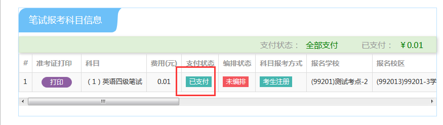 支付完成。考生可以自行打印准考证,必须到准考证打印时间才可以打印。