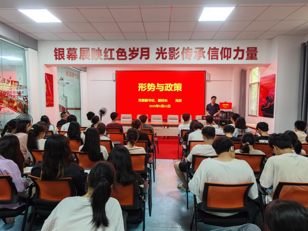 5月21日下午,校党委副书记、副校长冯赟在“一站式”学生社区红色影院以中美“关税战”为主题,为抱石艺术学院2024级环境设计本科2班上了一堂内涵丰富、精彩生动的“形势与政策”课,深入剖析中美贸易摩擦背后的复杂局势及其影响,为同学们拨开迷雾,明晰未来发展方向。
