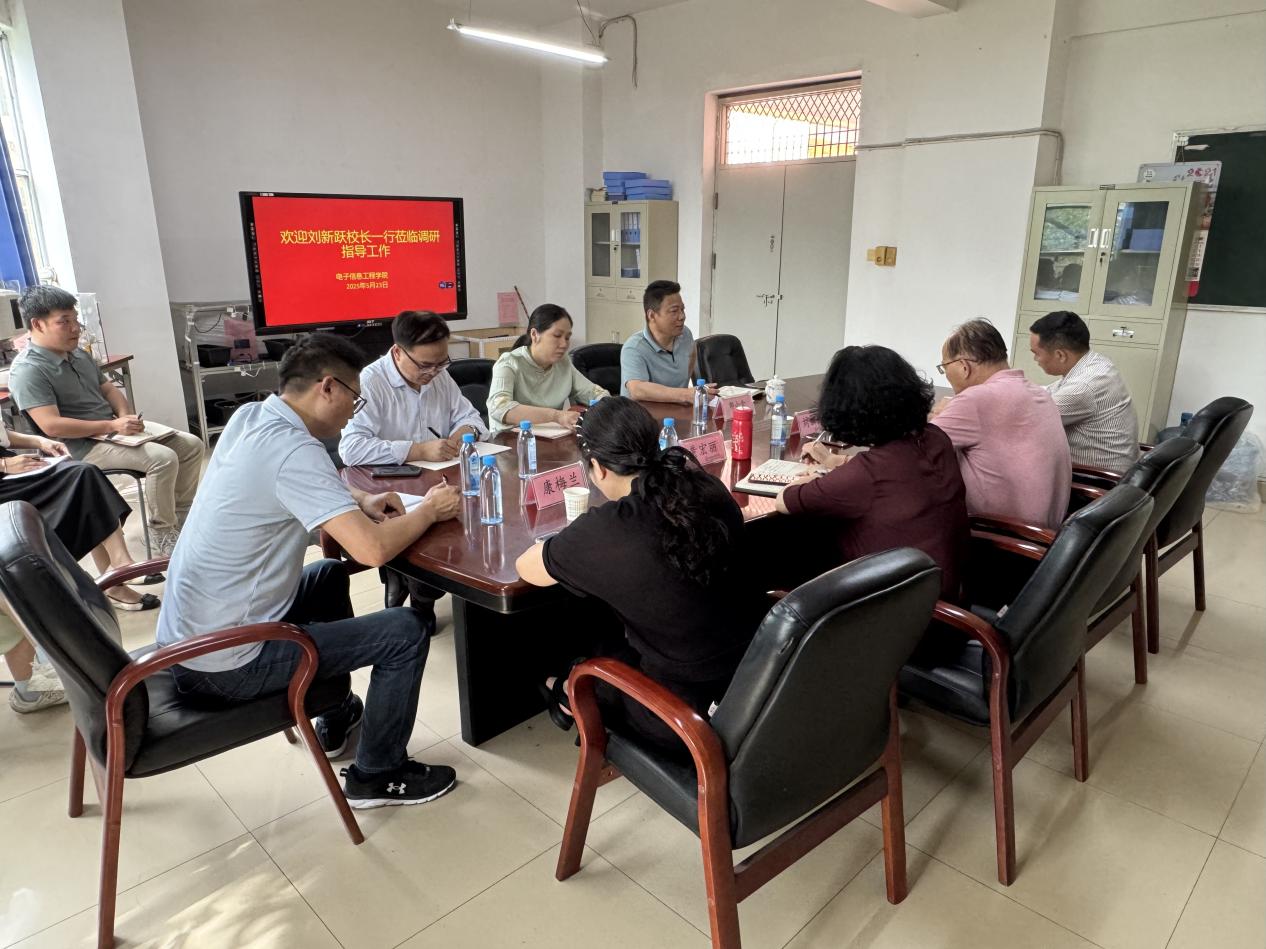 校长办公室、人事处、教务处负责人陪同调研,电子信息工程学院院长邹小金,党总支书记陈小华及各教研室主任参加会议。