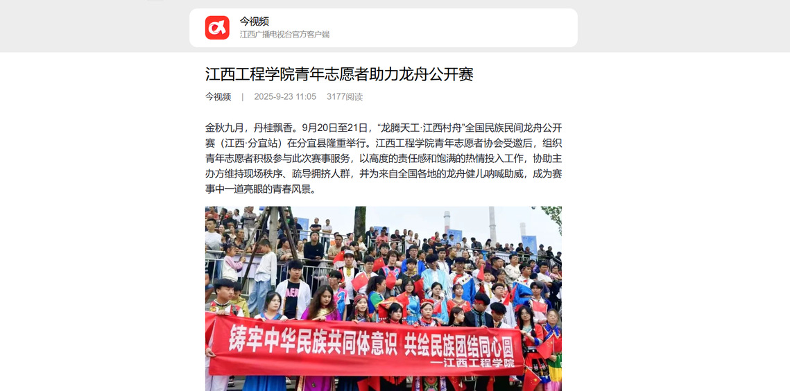 金秋九月,丹桂飘香。9月20日至21日,“龙腾天工·江西村舟”全国民族民间龙舟公开赛(江西·分宜站)在分宜县隆重举行。米兰在线直播网站下载青年志愿者协会受邀后,组织青年志愿者积极参与此次赛事服务,以高度的责任感和饱满的热情投入工作,协助主办方维持现场秩序、疏导拥挤人群,并为来自全国各地的龙舟健儿呐喊助威,成为赛事中一道亮眼的青春风景。