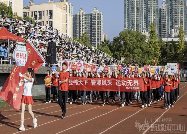 他们迈着整齐的步伐,朝气蓬勃地走过主席台,展现出江工人昂扬向上的精神风貌。每一个方阵都独具特色,或口号嘹亮,或服装整齐,或表演精彩,为开幕式增添了一抹抹绚丽的色彩。