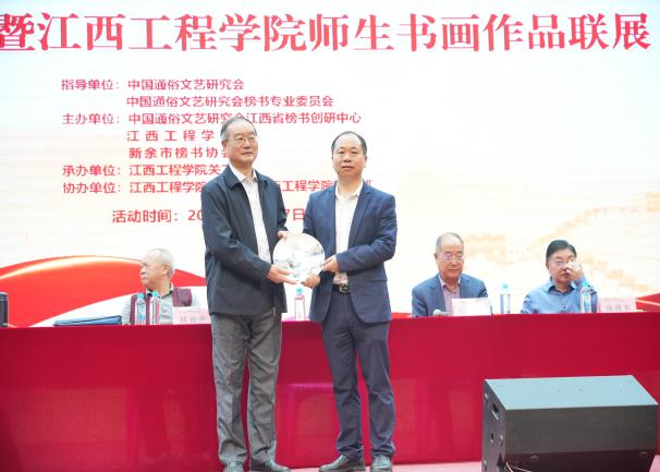 新余市政协原主席廖兰芳,新余市原副市长赖世平,江西省政协原常委、新余市政协原副主席饶良僖,新余市渝水区政协原主席、二级巡视员徐徕水,中国榜书委员会副会长、江西省榜书创研主任涂烈,江西榜书创研中心执行主任、新余市榜书协会主席何友富,江西省榜书创研中心常务副主任万仁余,江西省榜书创研中心副主任涂和平和书画界知名人士齐聚一堂,共同见证这一艺术盛会。活动由校党委委员、理事长助理、校长助理乐俊杰主持。